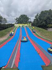 zjazd na oponie, zabawa w małpim gaju oraz spotkanie ze zwierzętami.